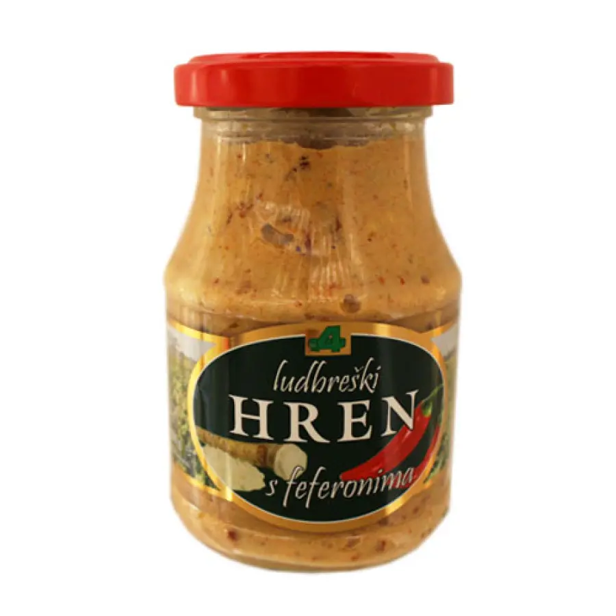 hren 78 %, feferoni min. 2 %, voda, repičino ulje, ocat, sol, šećer, zgušnjivači (E415, modificirani kukuruzni škrob, E421), konzervansi (E224, E330)