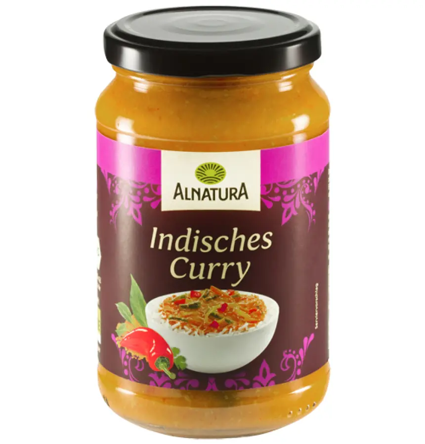 Voda, koncentrat rajčice, luk, ulje suncokreta, crvena paprika 6 %, zelene mahune, mrkva, indijski oraščići, smeđi šećer, curry u prahu 2 % (kim, sjemenke korijandera, đumbir, kurkuma, češnjak, paprika, čili, cimet), kukuruzni škrob, morska kuhinjska sol, koncentrat soka limuna.