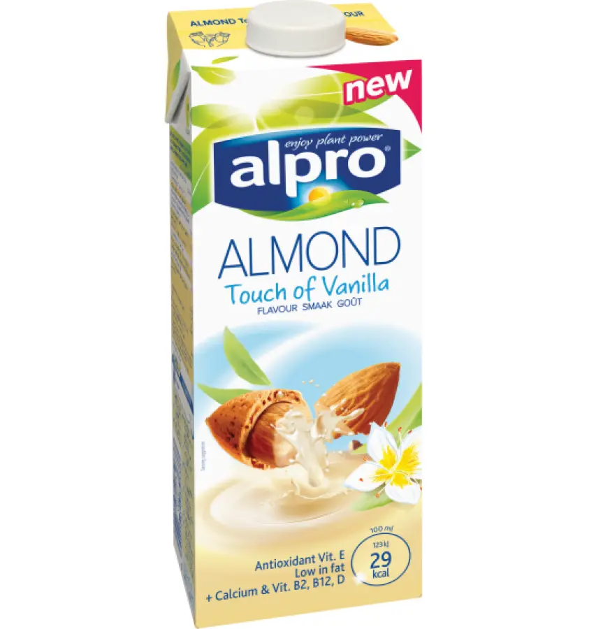 Voda, šećer, bademi (2,3 %), inulin, trikalcijev fosfat, prirodna aroma vanilije, morska sol, stabilizatori (karuba guma, gellan guma), emulgator (suncokretov lecitin), vitamini (riboflavin (B2), B12, E, D2)