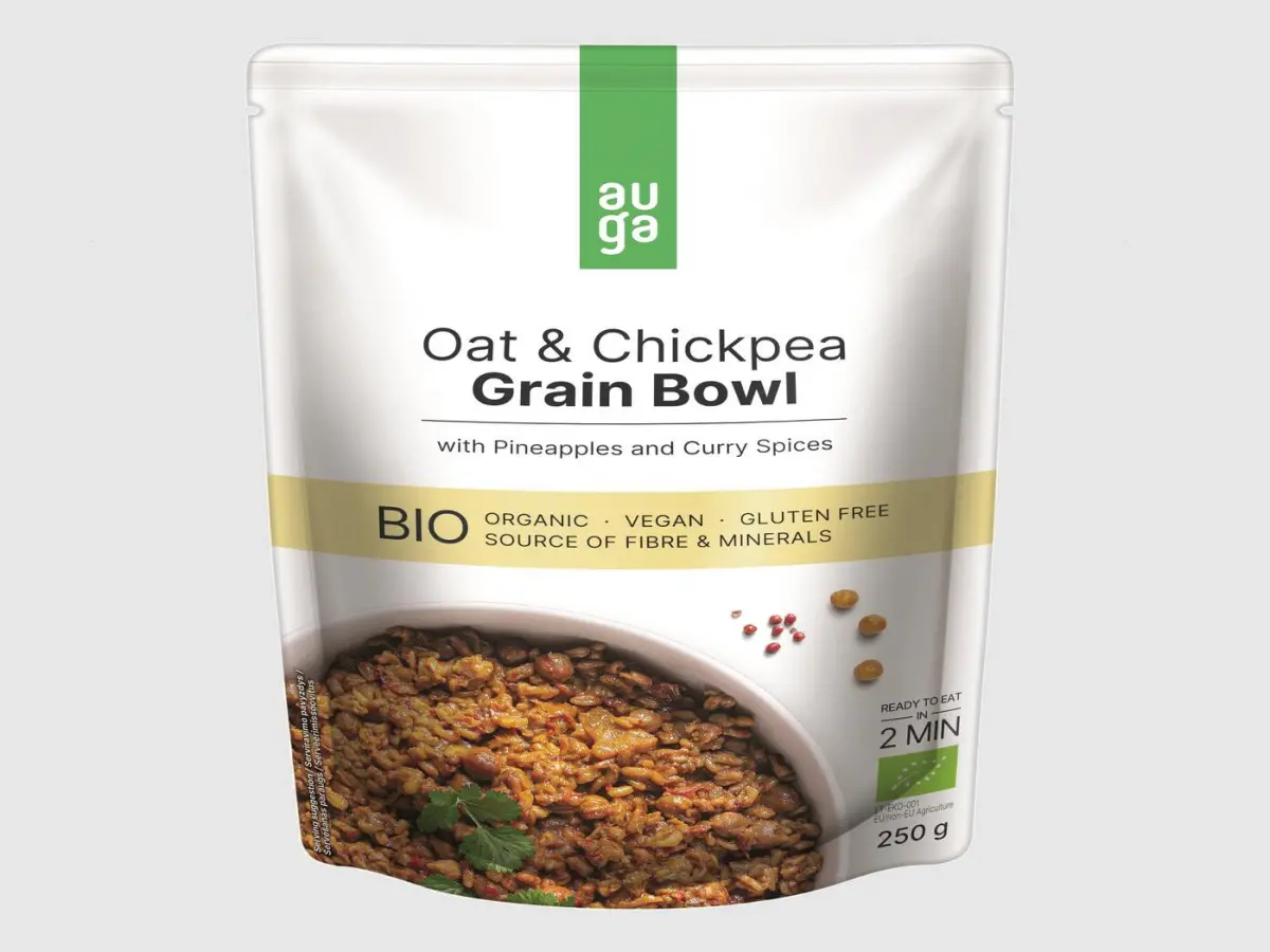 Voda, zob* 24 % (bez glutena), kokosovo vrhnje* (ekstrakt kokosa* 60 %, voda), slanutak* 6,6 %, prženi luk* (luk*, suncokretovo ulje*), ananas* 3,3 %, paprika*, kokosovo ulje*, koncentrat narančinog soka*, curry začini* 0,66 %, čili*, morska sol, kardamom*, limunska trava*.