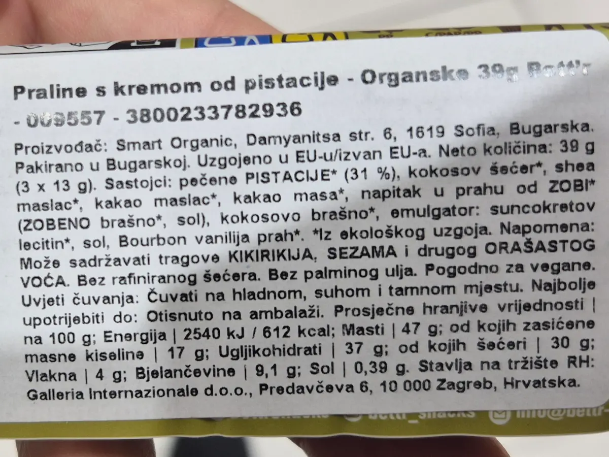 Pistachio butter cups 39 g