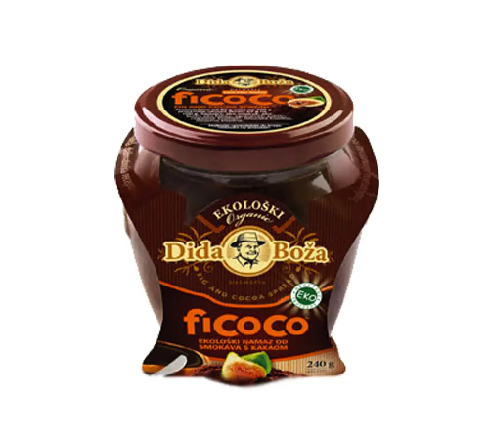 eko smokve, eko šećer, eko kakao, zgušnjivač: pektin, regulator kiselosti: limunska kiselina, mliječna kiselina