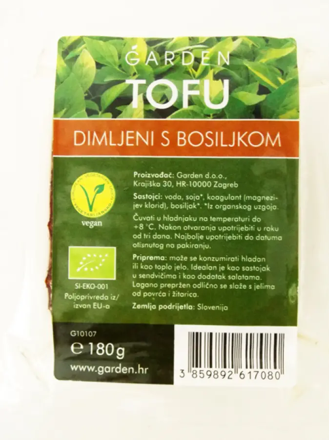 voda, soja, koagulant (magnezijev klorid), bosiljakProizvod sadrži sojuVrlo je ukusan kuhan, pržen, pečen, kao i na roštilju. Prije pripreme ga marinirati