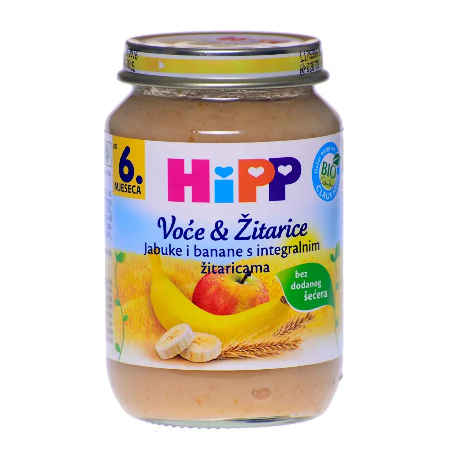 Voće 80 % (jabuke 30 %, sok od jabuke od koncentriranog soka jabuke, banane 25 %), voda, žitarice 5 % (pahuljice od cjelovitog zrna pšenice, pahuljice od cjelovitog zrna zobi), vitamin C