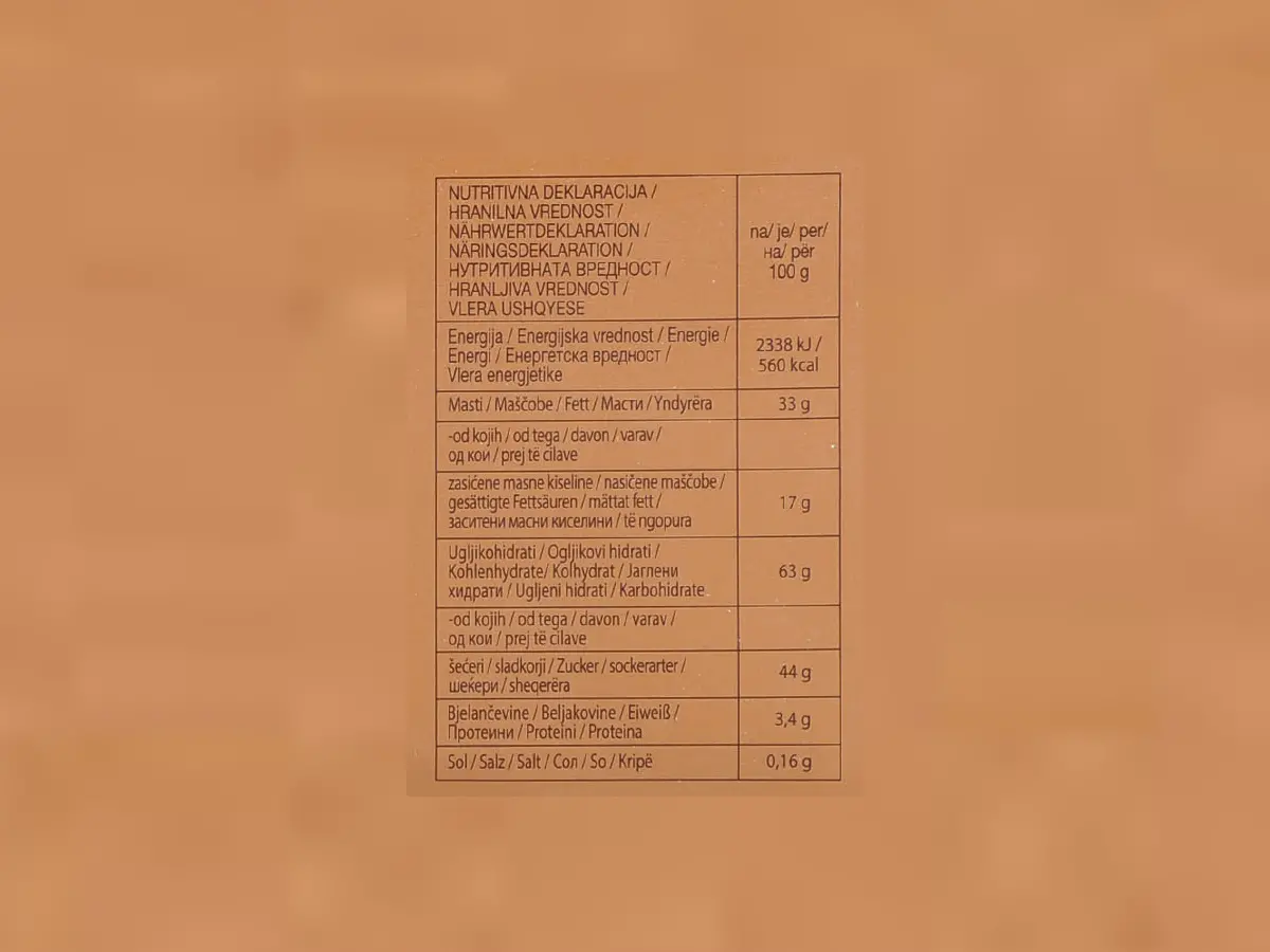 Vafel proizvod s kakaovim punjenjem (81 %).