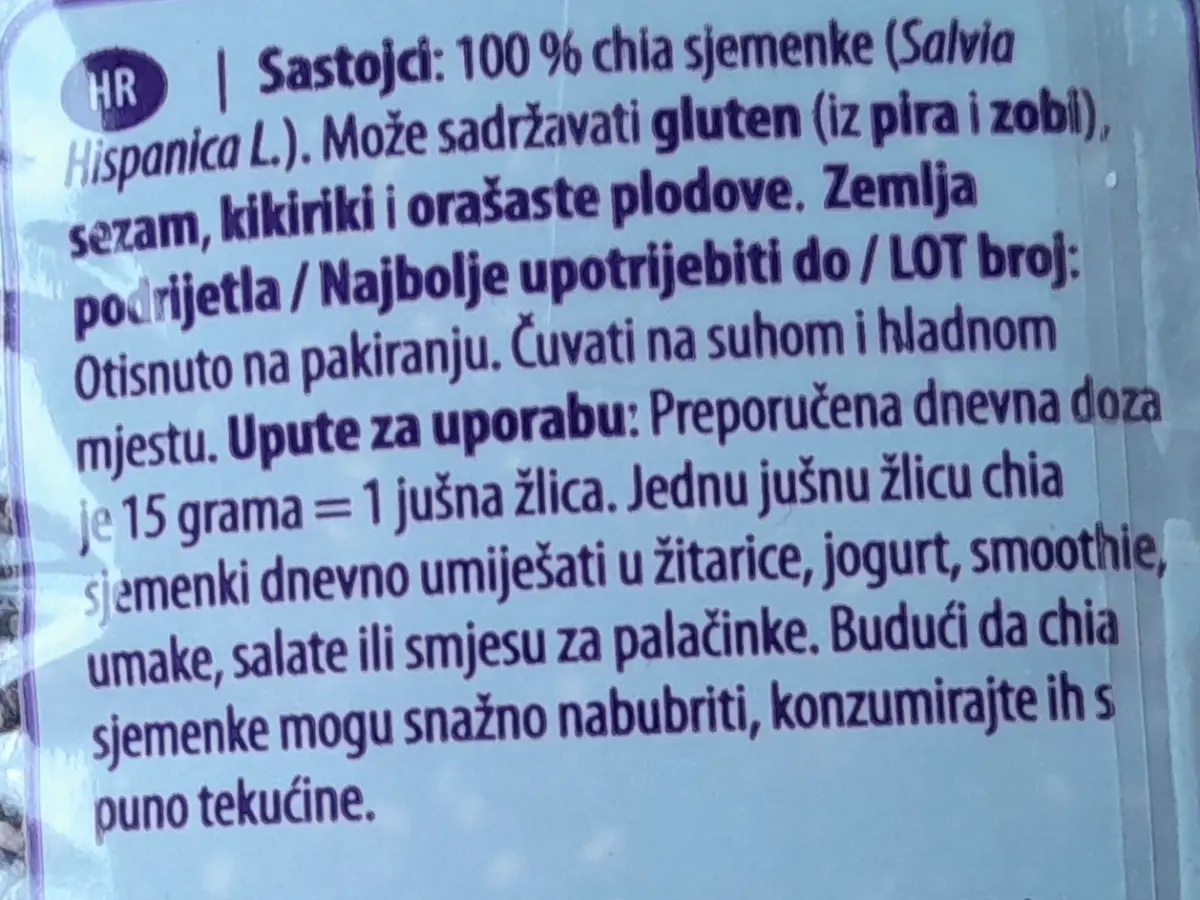 Energetska vrijednost: 1825 kJ/ 436 kcal