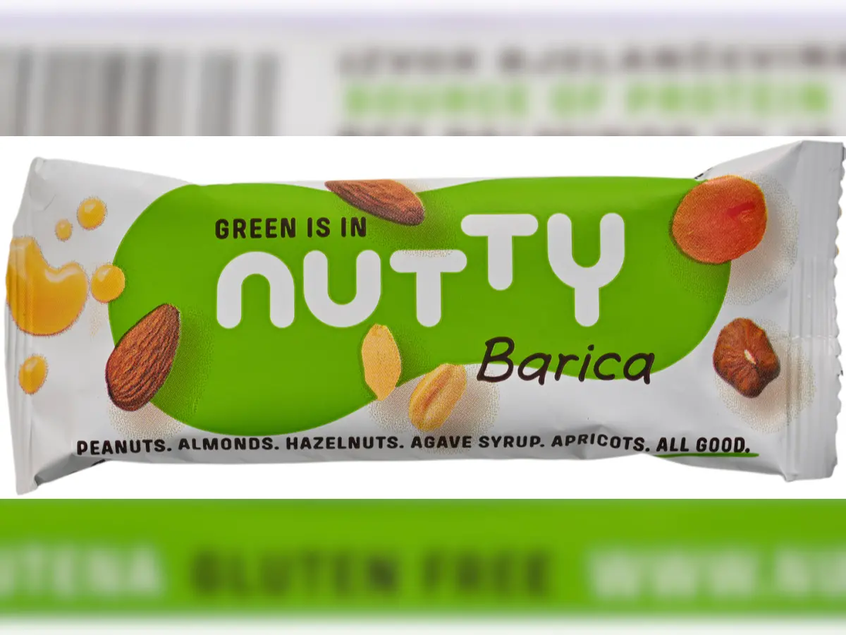 Nutty Barica Vegan Snack pločica kikiriki maslac, orašasto voće & marelice, agavin sirup bez glutena.