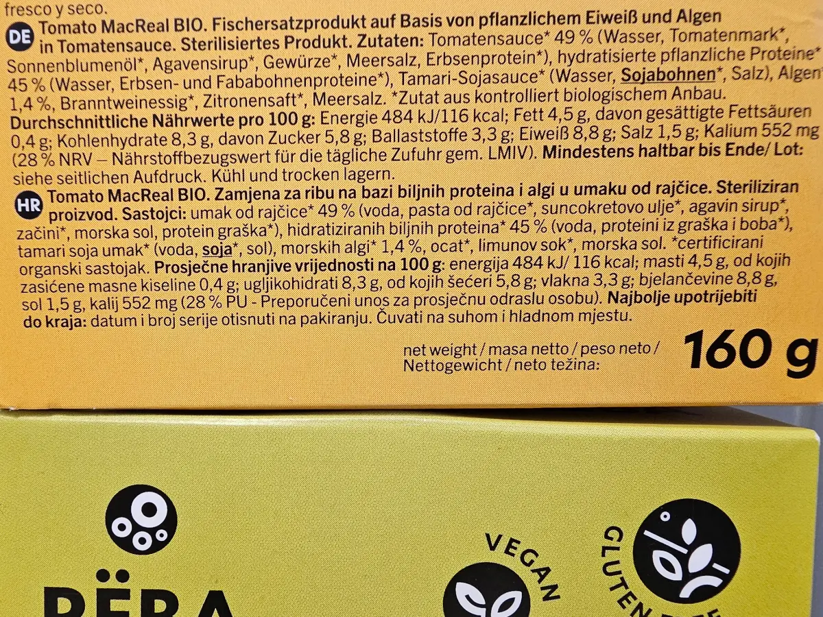 A plant-based alternative to traditional mackerel in tomatoes, based on a recipe from an old Polish fish processor.