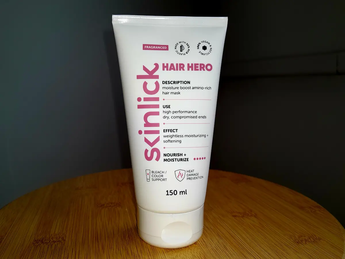 Skinlick Hair Hero Nourish + Moisturize je reparativna maska za kosu za suhe vrhove sklone pucanju.