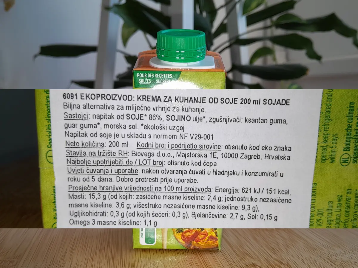 Krema za kuhanje od soje je ukusna alternativa mliječnom vrhnju za kuhanje, spravljena od organskih zrna soje.