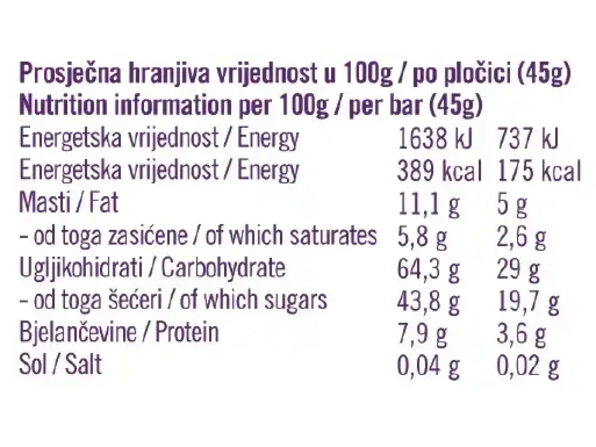 Fruits & nuts pločica 16 x 45 g