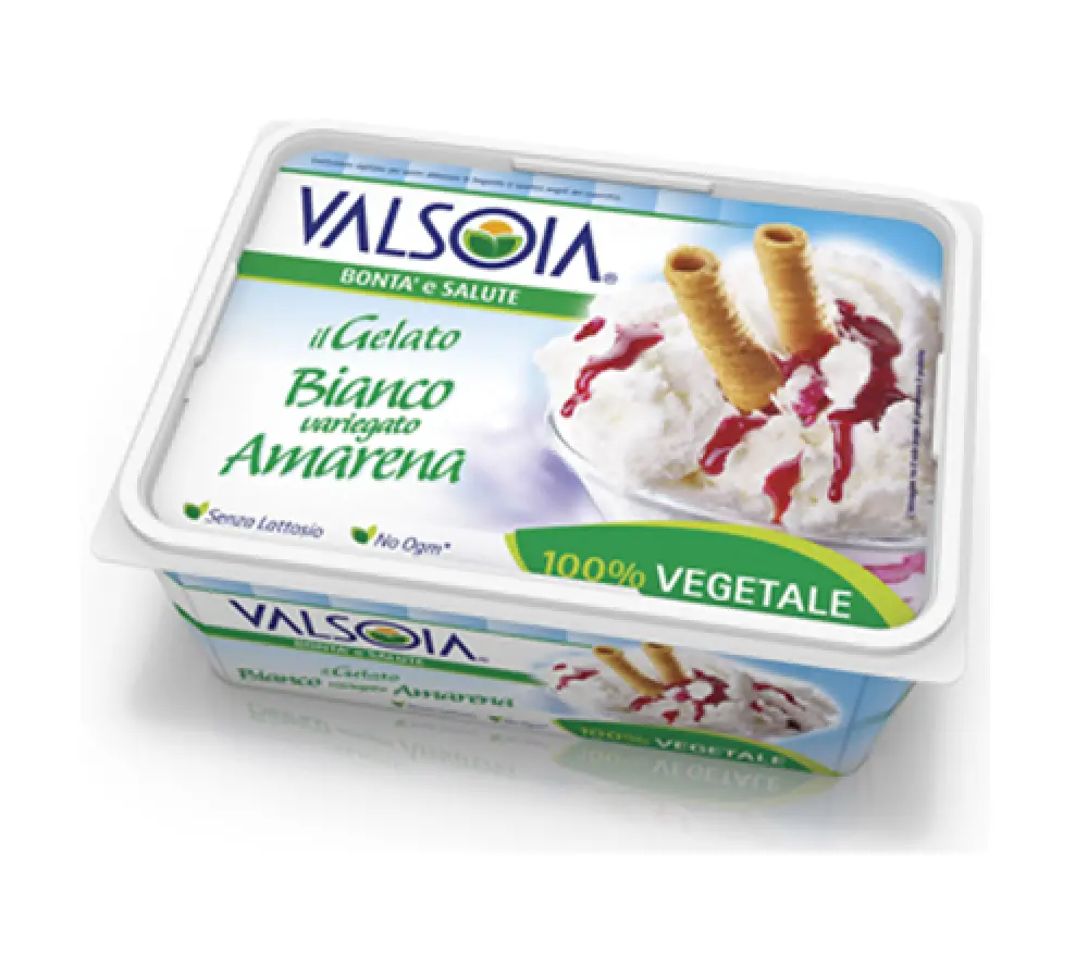 ekstrakt soje 56 % (voda, zrno soje 8,2 %, morska sol), šećer, glukozni sirup, dekstroza, kokosova mast, sok od višnje od koncentriranog soka 1,5 %, emulgatori: mono i di gliceridi masnih kiselina, saharozni esteri masnih kiselina; stabilizatori: natrijev alginat, karuba guma, guar guma. pektini; bojilo: beetroot red; aroma, regulator kiselosti: limunska kiselina