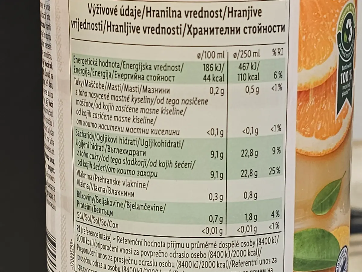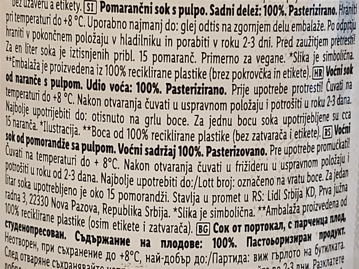 Svježe cijeđeni sok od naranče s komadićima naranče 1 L