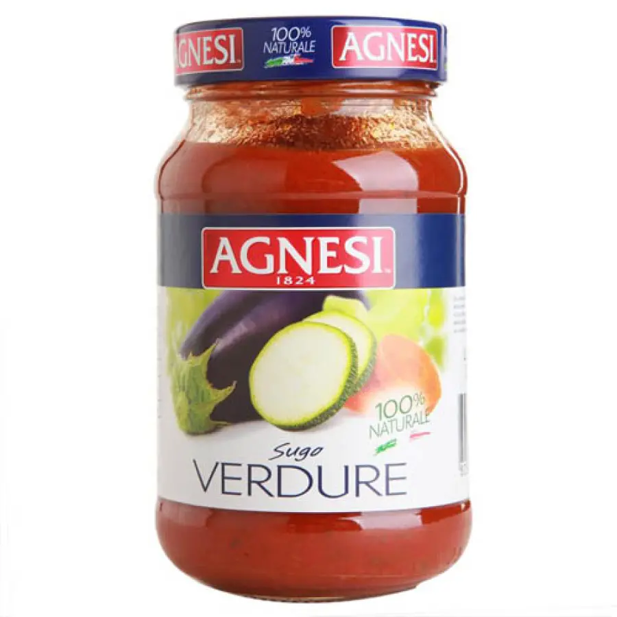 rajčica (59 %), polukoncentrat rajčice, koncentrat rajčice, voda, celer (4 %), paprika (4 %), tikvice (3,4 %), patlidžan (2,6 %), mrkva (2 %), maslinovo ulje, luk (1,3 %), sol, šećer, rižin škrob, bosiljak, bijeli papar, origano, mažuran, vlasac, estragon, majčina dušica, češnjak, regulator kiselosti: limunska kiselina