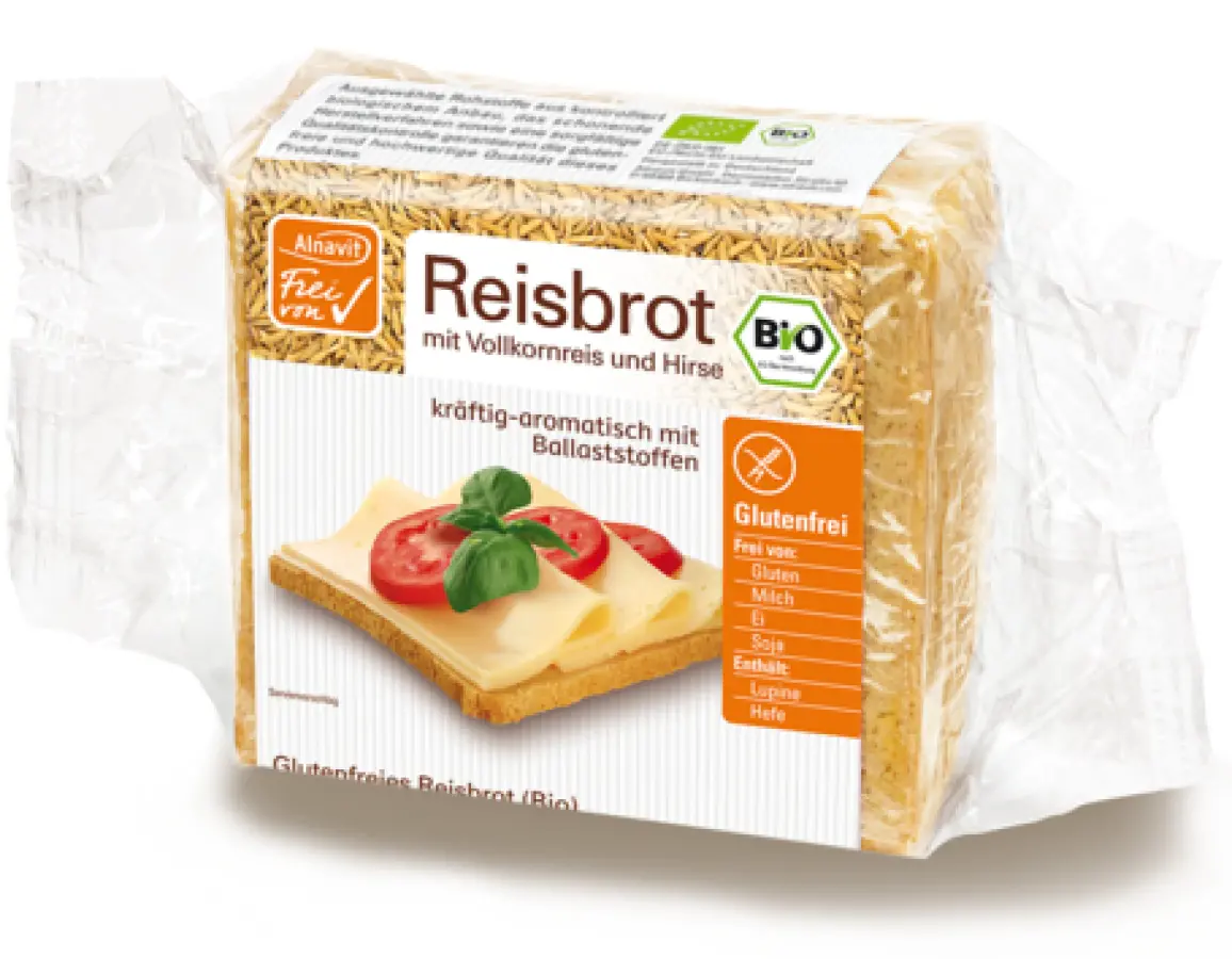 voda, integralna riža 39 %, proso 8 %, kukuruz, brašno slatke lupine 7 %, rižino brašno 5 %, zgušnjivač: brašno guarane, kuhinjska sol, kvasac