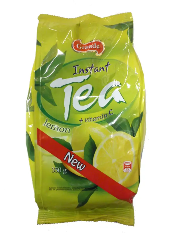 šećer, glukoza, koncentrat limuna (1,6 %) regulator kiselosti: limunska kiselina, aroma, karamelizirani šećer, ekstrakt crnog čaja (0,25 %), vitamin C (min, 100 mg / 100 g suhe tvari)