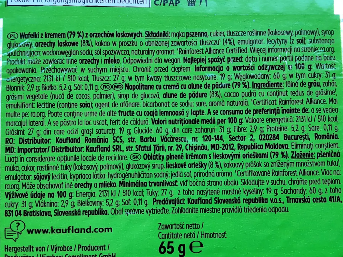 Napolitanke s lješnjacima 4 x 65 g