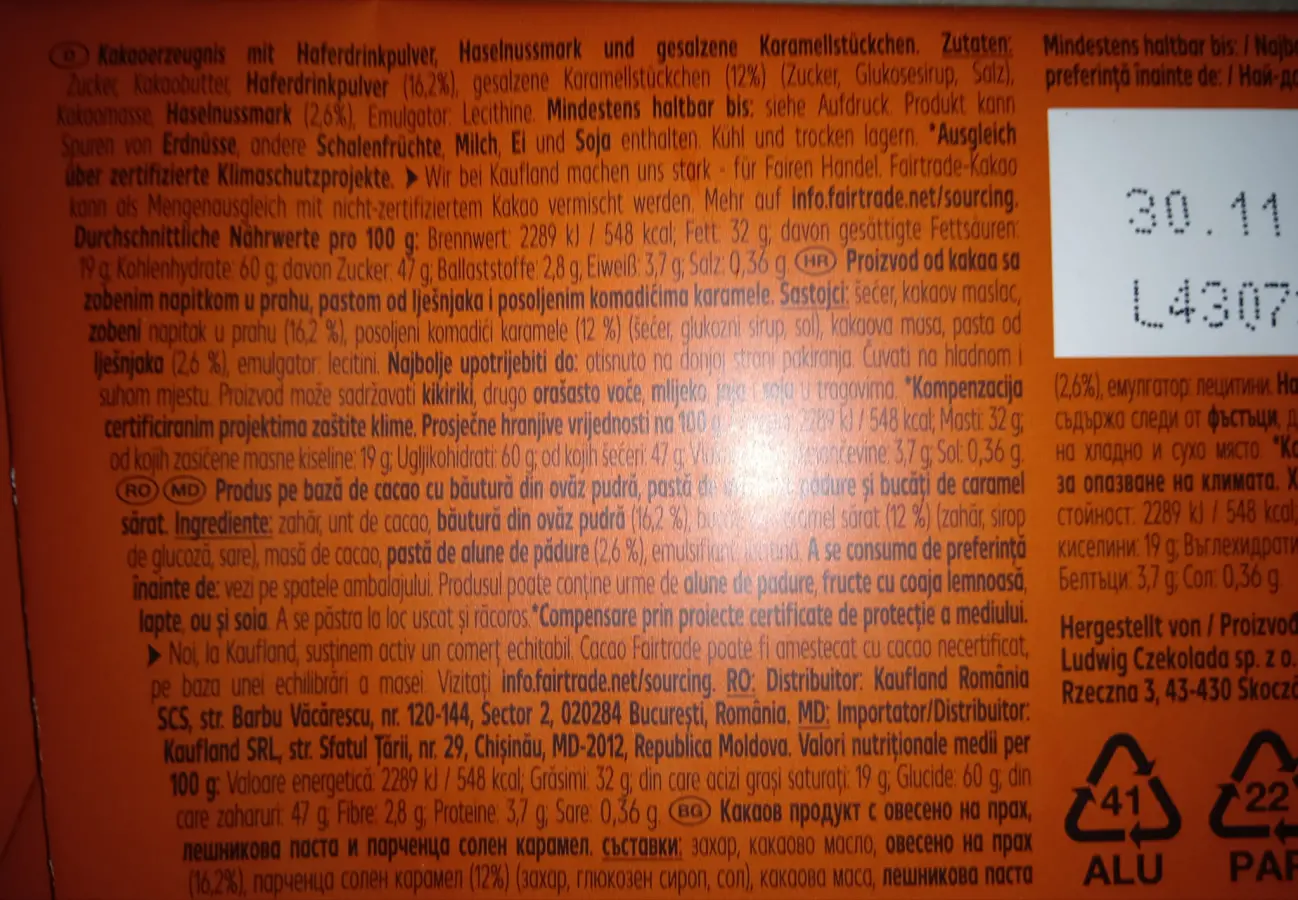 Čokolada s lješnjacima i karamelom 100 g