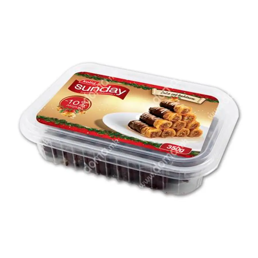 Pšenično brašno, biljno ulje (suncokret, soja, kukuruz), biljne masti (kokosova i palmina), sirup (voda, šećer, glukozni sirup, regulator kiselosti: E330, aroma vanilije u prahu, konzervans: E202), kakao preljev 17 % (palmino ulje, šećer, kakao u prahu 29 %, emulgator: sojin lecitin), voda, orah 7 %, bijela krema (palmino ulje, šećer, sojino mlijeko u prahu, emulgator: sojin lecitin, aroma vanilije u prahu), pšenični griz, cimet 1 %, konzervans E282