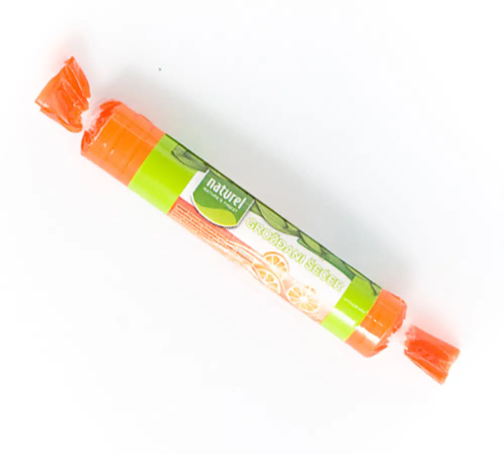 dekstroza (89 %), kiselina: limunska kiselina, aroma naranče, L-askorbinska kiselina, hidrigenirana biljna mast