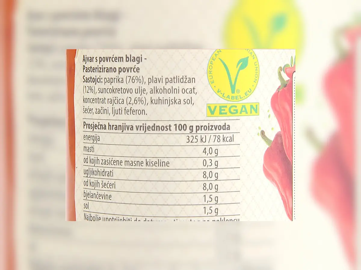 Paprika (76 %), plavi patlidžan (12 %), ocat suncokretovo ulje, koncentrat rajčica (2,6 %), kuhinjska sol, šećer, ljuti feferon, začini.