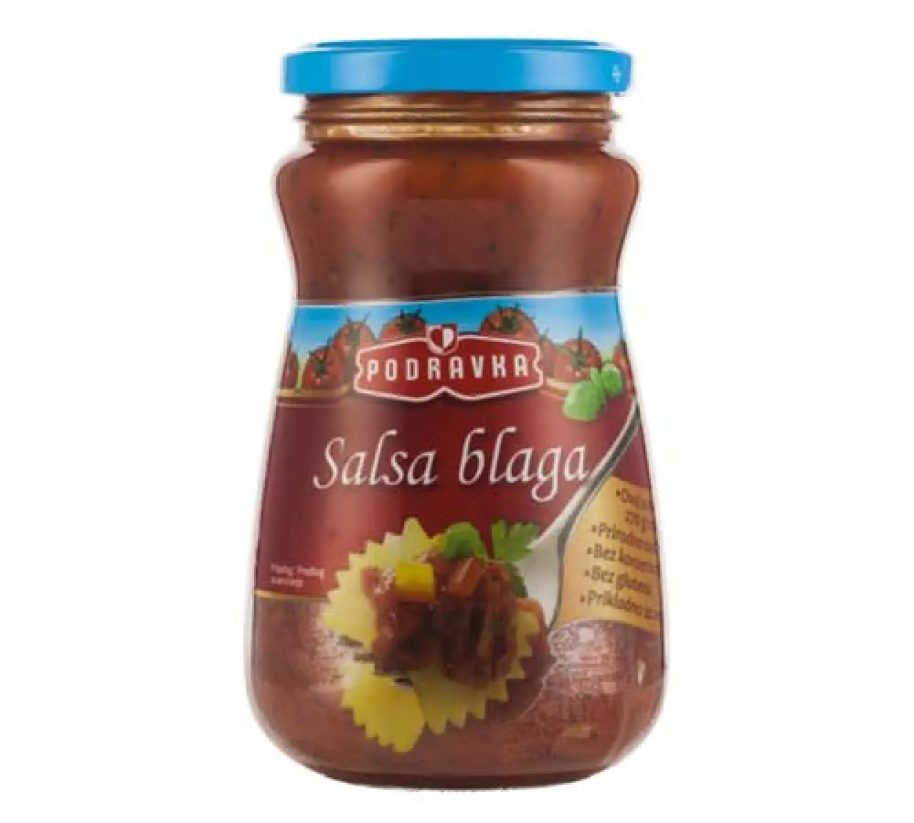sjeckana rajčica 65 %, voda, crvena paprika 12 %, šećer, rižin škrob, ekstra djevičansko maslinovo ulje 1 %, suncokretovo ulje, sušeni luk, kuhinjska sol, sušena mrkva, začini 0,5 %, regulator kiselosti: limunska kiselina
