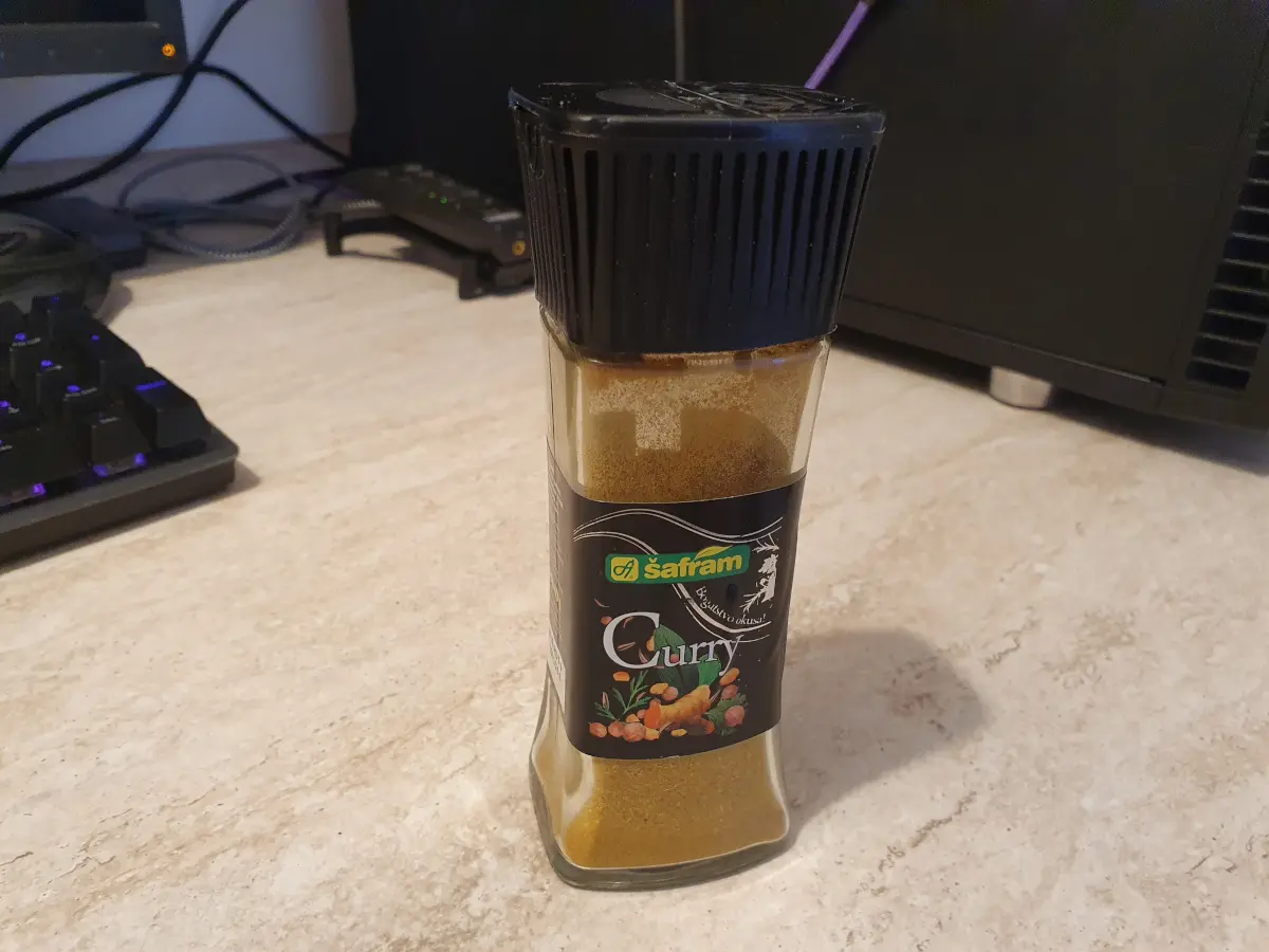 Korijander, kurkuma, kim, pjeskavica, komorač, češnjak, lovor, crni papar, sol.