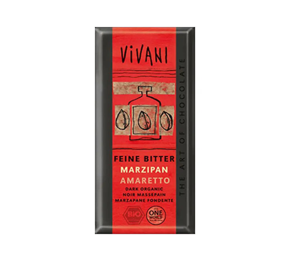tamna čokolada (kakao masa, šećer od šećerne trske, kakao maslac, maslac). Kakao: 60 %. Punjenje 36 %: marzipan (bademi, šećer od šećerne trske), šećer od šećerne trske, glukozni pšenični sirup, amareta (60 %vol), nehidrogenizirana biljna masnoća