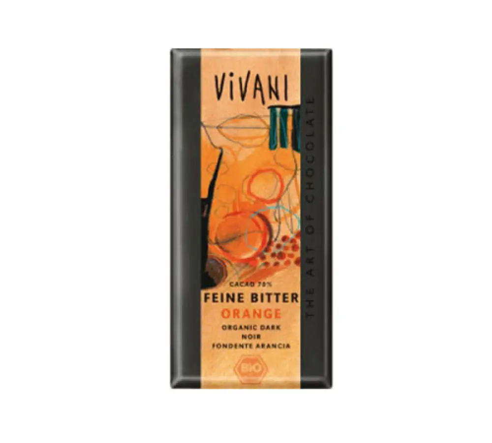 kakao masa*, nerafinirani smeđi šećer*, kakao maslac*, esencijalno ulje naranče*. *Iz kontroliranog ekološkog uzgoja. Sadržaj kakaa: 70 %Proizvod može sadržavati tragove badema, lješnjaka, mlijeka i pšenice