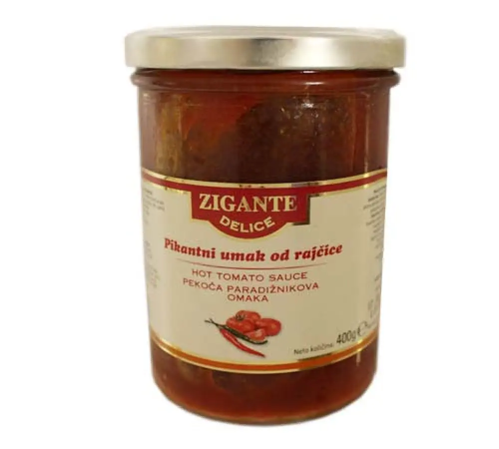 rajčica 86 %, crveni luk, ekstra djevičansko maslinovo ulje, sol, šećer, ljuta paprika 0,3 %, začini