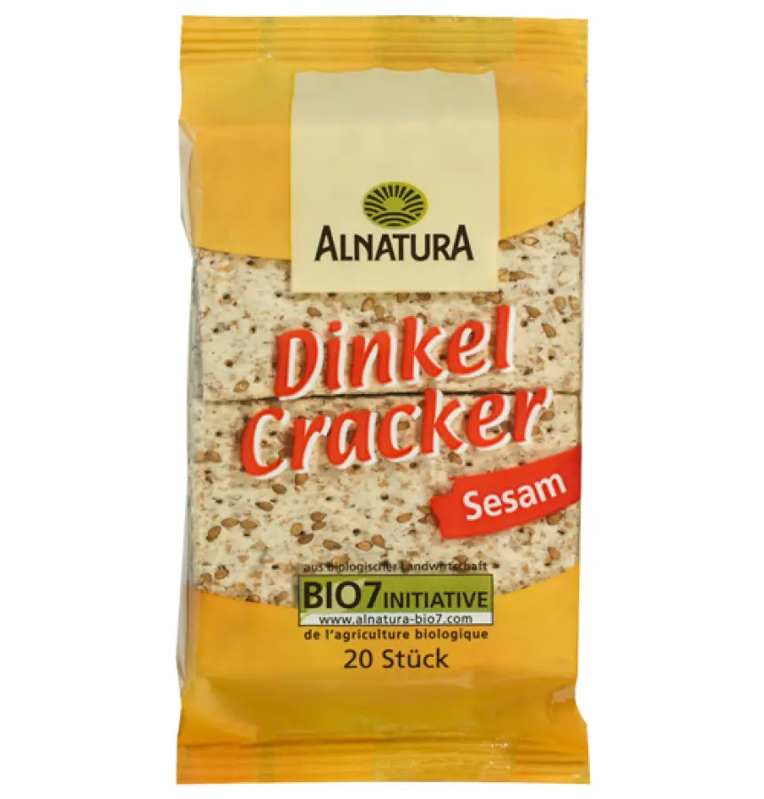 integralna prekrupa pira 81 %, sezam 8 %, nehidrogenirana palmina mast, morska kuhinjska sol, kvasac, ječmeni slad, tvar za rahljenje: natrij hidrogenkarbonatProizvod sadrži gluten i sezam