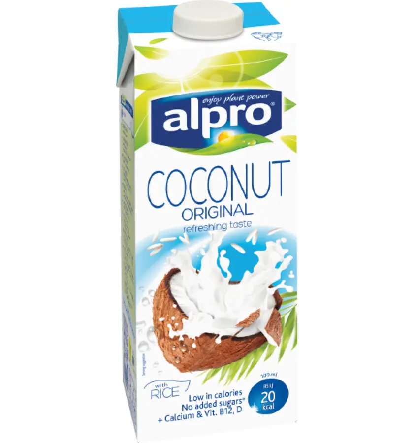 Voda, kokosovo mlijeko (5,3 %) (kokos krema, voda), riža (3,3 %), trikalcijev fosfat, stabilizatori (karagenan, guar guma, ksantan guma), morska sol, vitamini (B12, D2), aromeProizvod sadrži kokos i rižu. Može sadržavati tragove lješnjaka i badema