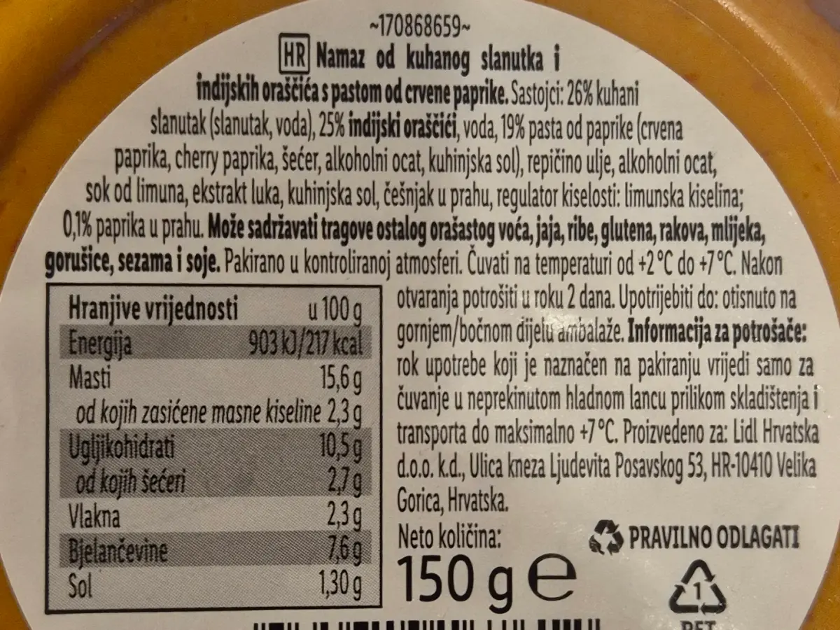 Namaz od slanutka i indijskih oraščića s paprikom 150 g