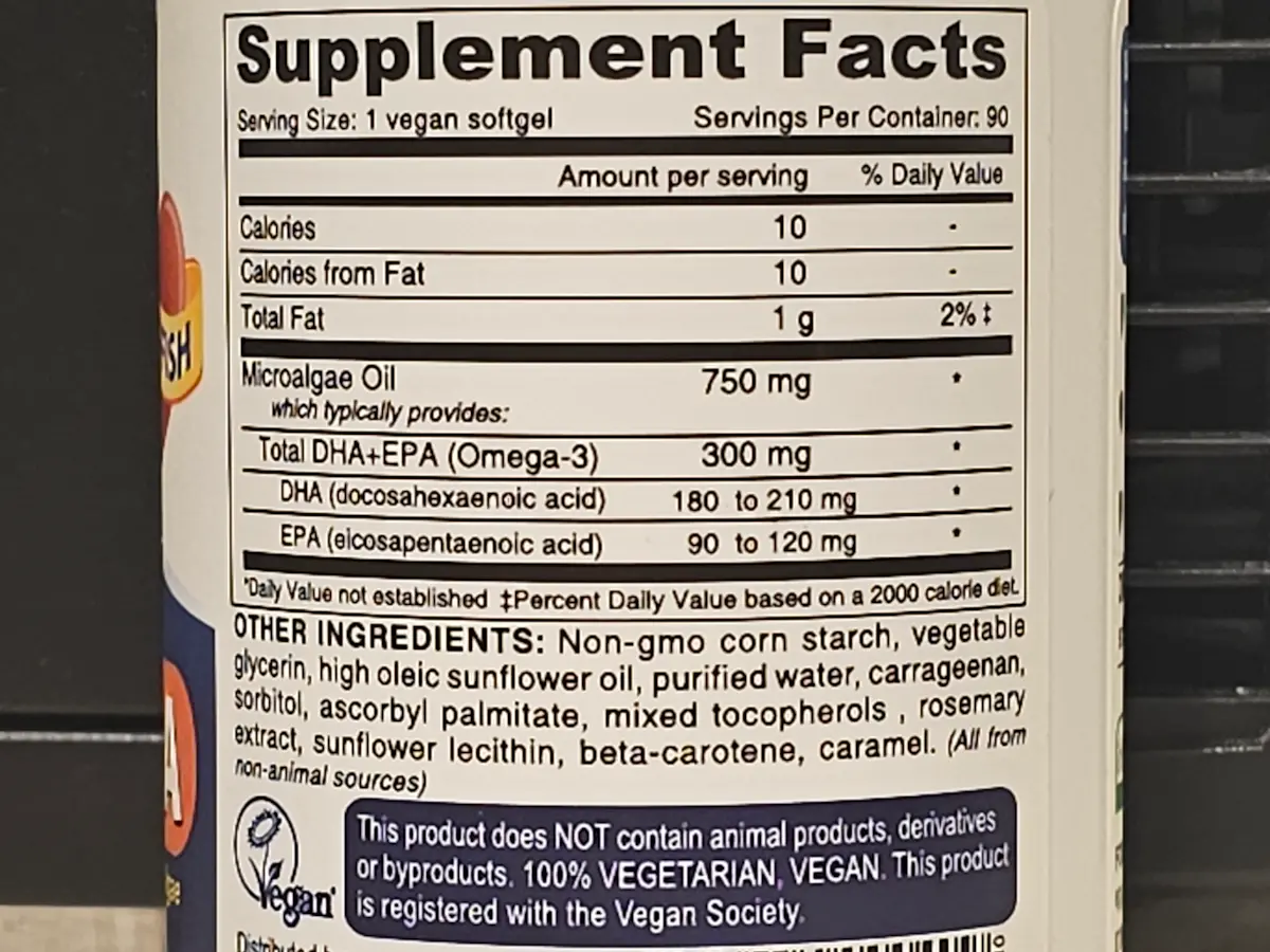 90 SoftgelsVegan Omega-3 DHA EPA SupplementOnce-Per-Day Softgel300 mgCarrageenan Gelatin & Gluten FreeNon-Fish Algae Oil Fatty Acids