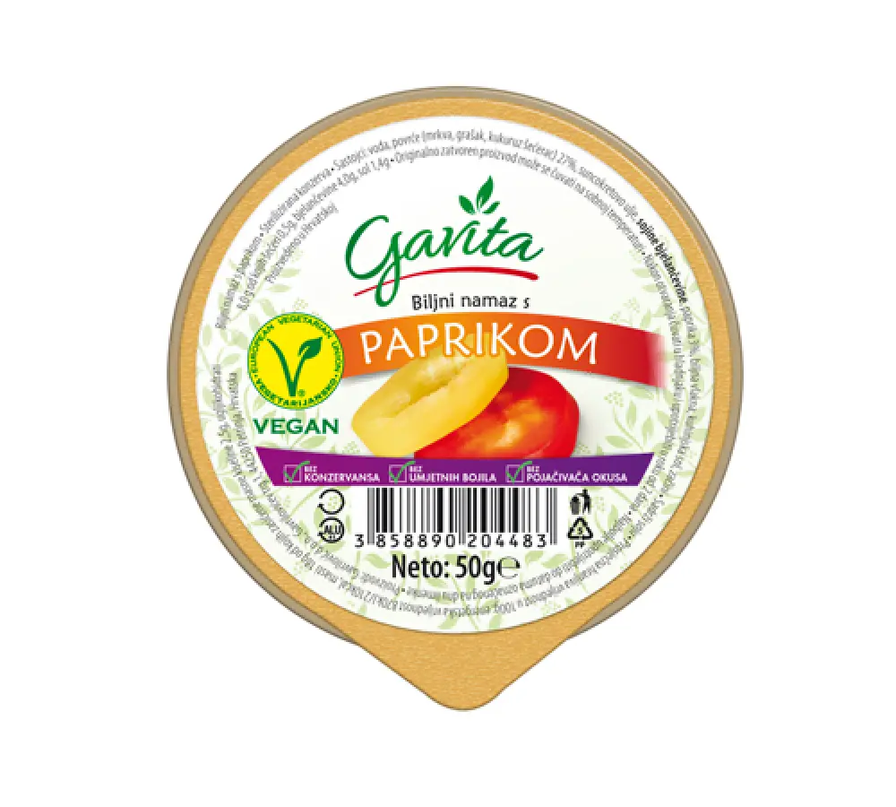 voda, mrkva, grašak, kukuruz šećerac, suncokretovo ulje, sojine bjelančevine, paprika, biljna vlakna, kuhinjska sol, začini