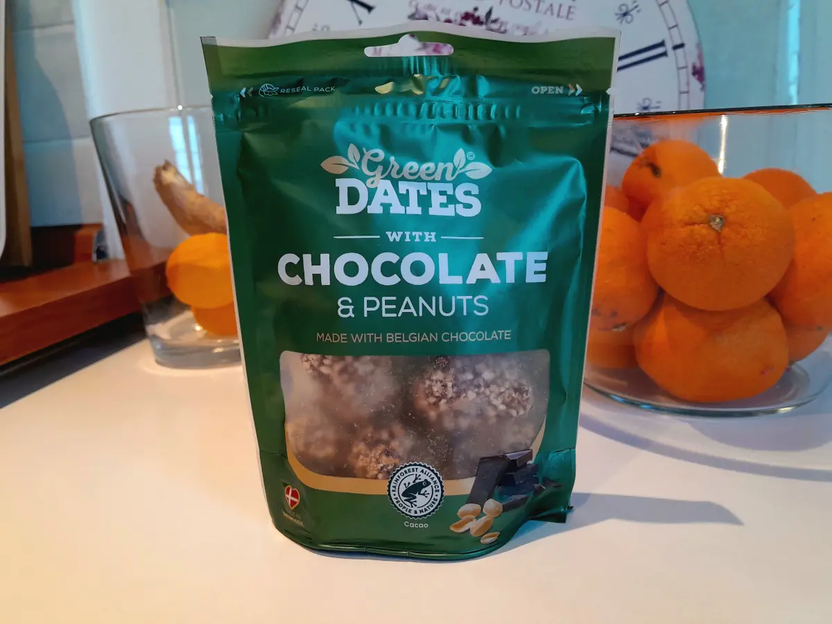 Datulje s belgijskom tamnom čokoladom i kikirikijem 120 g