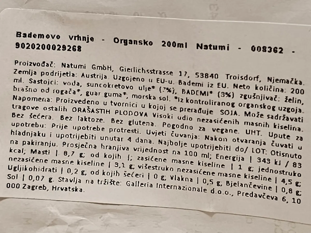 Bademovo vrhnje 200 ml