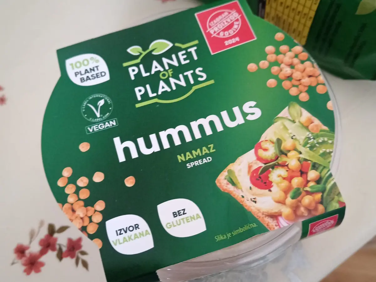 Voda, kuvane leblebije 35%, repičino ulje, senf (voda, bela slačica, alkoholni kvas, šećer, jodirana so, crna slačica, zgušnjivač (ksantan guma), boja (riboflavin), pasta od susama, biljna vlakna, jodirana so, vinski kvas, začini, regulatori kiselosti (limunska kiselina, natrijum hidrogen karbonat), modifikovani krompirov skrob, šećer, zgušnjivač (ksantan guma), konzervans (kalijum sorbat).