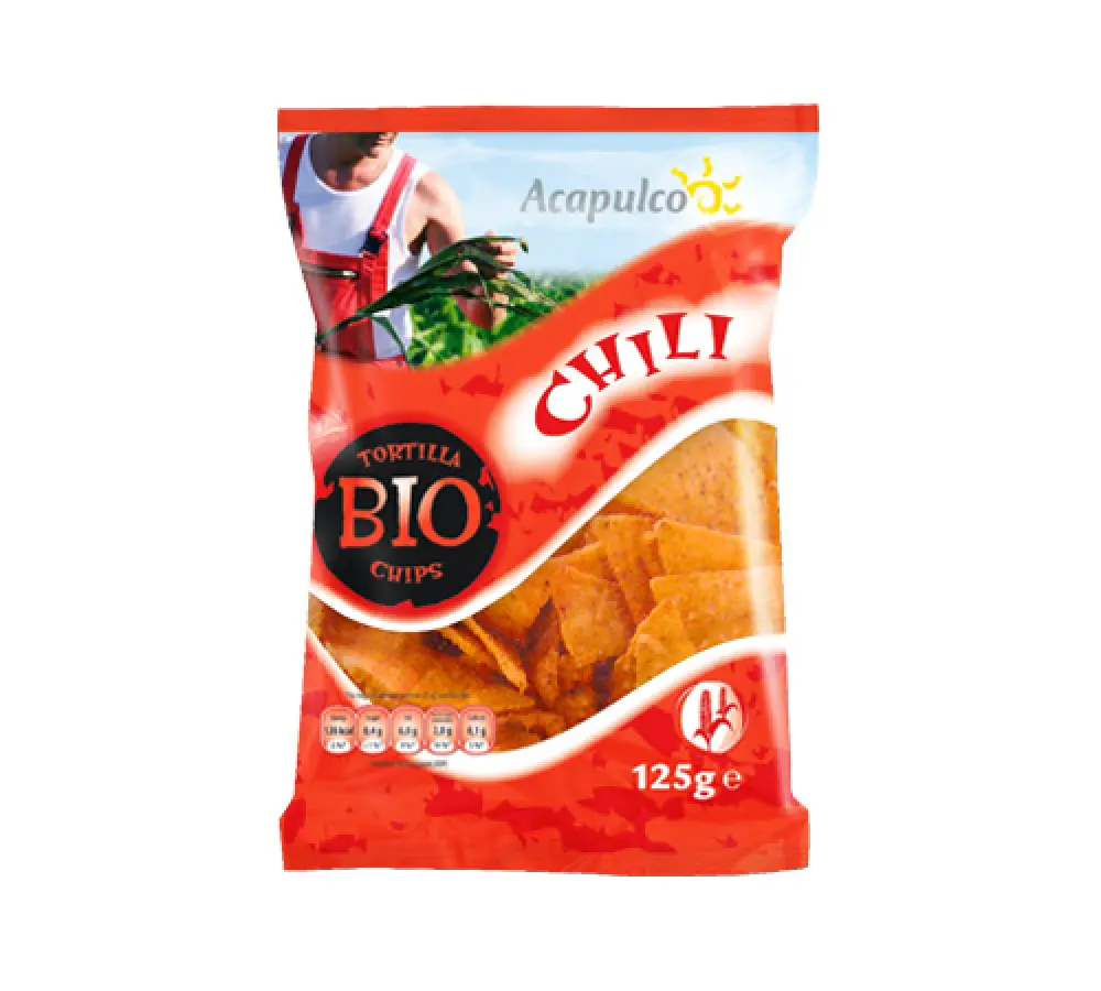 brašno od kukuruza, suncokretovo ulje, chili mix 4 % (sol, paprika, češnjak, luk, šećer, korijandar, chili, pjeskavica, ljupčac)