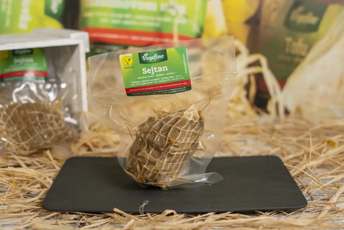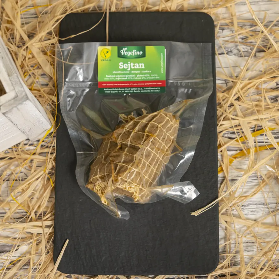 Pšenični proteini – gluten 40 %, začini, voda 10 %, sojin umak 12 %, češnjak 2 %, prirodni dim.Sadrži pšenicu.